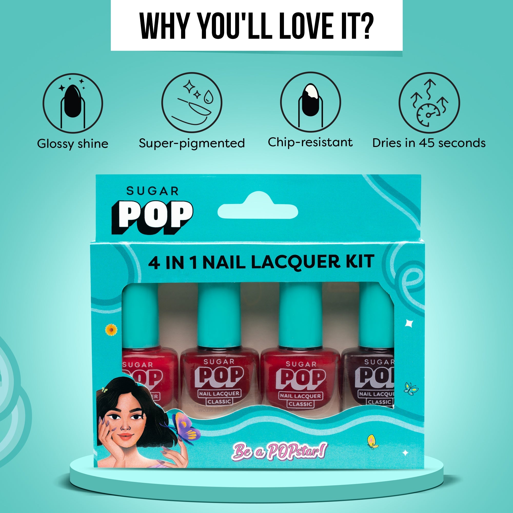 - This ultimate kit includes 4 stunning nail lacquers, perfect for matching every mood, style, outfit and occasion.