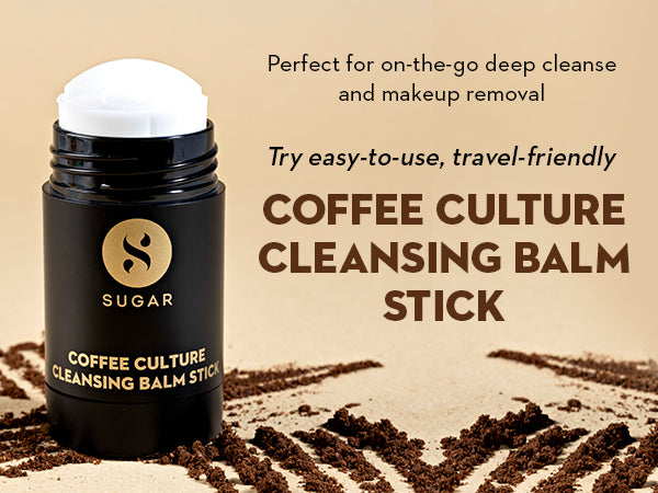Get squeaky clean skin on-the-go with this TSA-friendly SUGAR Coffee Culture Cleansing Balm Stick! A new addition to the SUGAR Coffee Culture skincare range, this caffeine-infused cleansing balm is one of our coolest creations that comes in a mess-free, retractable tube to remove all makeup and excess impurities from pores, leaving you with a fresher-looking, clear and brighter complexion. This unique formulation works for all skin types and makes for the perfect first step in your daily cleansing routine. It is infused with vitamin E, rich sweet almond oil and organic jojoba oil that soothes and balances your skin, along with brightening coffee seed oil that instantly perks up dull and tired skin. Moreover, this cleansing balm is also enriched with hydrating olive oil, which is a great source of antioxidants and fatty acids that help deliver intense nourishment to your skin.