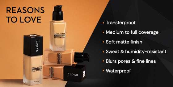 Introducing 'Matte Match', a full-coverage, transferproof foundation that glides on effortlessly and promises to last for 24 hours. This high-performing, light as air formula lends a weightless feel, effortlessly blurs pores, fine lines for a flawless matte look. Designed to withstand sweat, water and humidity, this breathable foundation stays intact without smudging or feeling cakey. The anti-oxidant-rich, moisturizing blend of skin-loving ingredients lend a nice soft-matte finish to your complexion. Glide it on and feel ready to conquer anything with this game-changer!