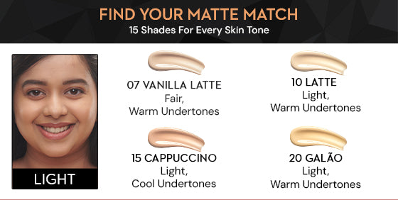 (Fair, Warm Undertones), 10 Latte (Light, Warm Undertones), 15 Cappuccino