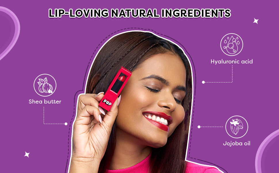 Swipe on the charm with this lipstick that's got your back when it comes to full coverage, long-lasting colour, and some drama! The super creamy, super dreamy and lightweight formula is loaded with shea butter, hyaluronic acid and jojoba oil, giving your lips the extra love they deserve. For taking your look from desk to dinner, this lippie in eye-catchy packaging is a must-have cause why settle for ordinary when you can be downright extraordinary?