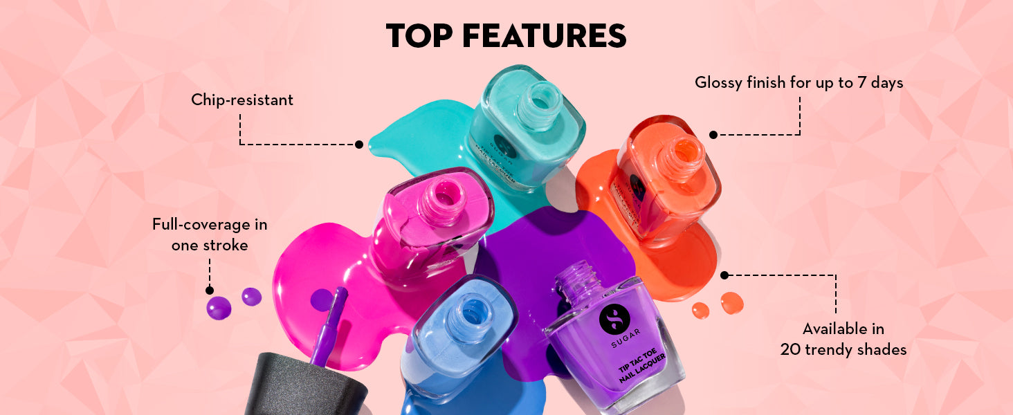 - Flaunt a salon-like manicure using our high-shine, glossy nail lacquers that are long-lasting and 100% chip-resistant
