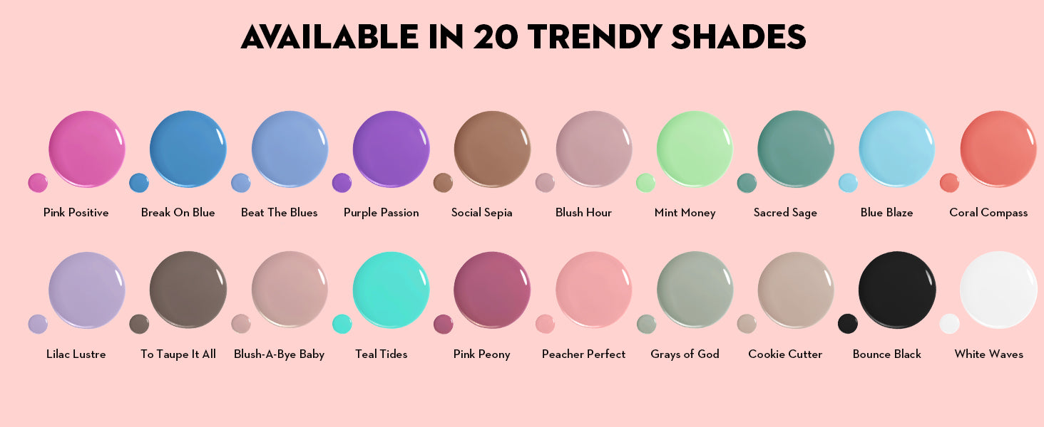 Ethyl Acetate, Butyl Acetate, Nitrocellulose, Polyester-23, Acetyl Tributyl Citrate, Isopropyl Alcohol, Stearalkonium Bentonite, Styrene/Acrylates Copolymer, Adipic Acid/Neopentyl Glycol/Trimellitic Anhydride Copolymer, Diacetone Alcohol, Sucrose Acetate Isobutyrate, Acrylates Copolymer, Silica, Broccoli Oil, Phosphoric Acid, Zinc Stearate, Approved ColoursFrequently Asked Questions