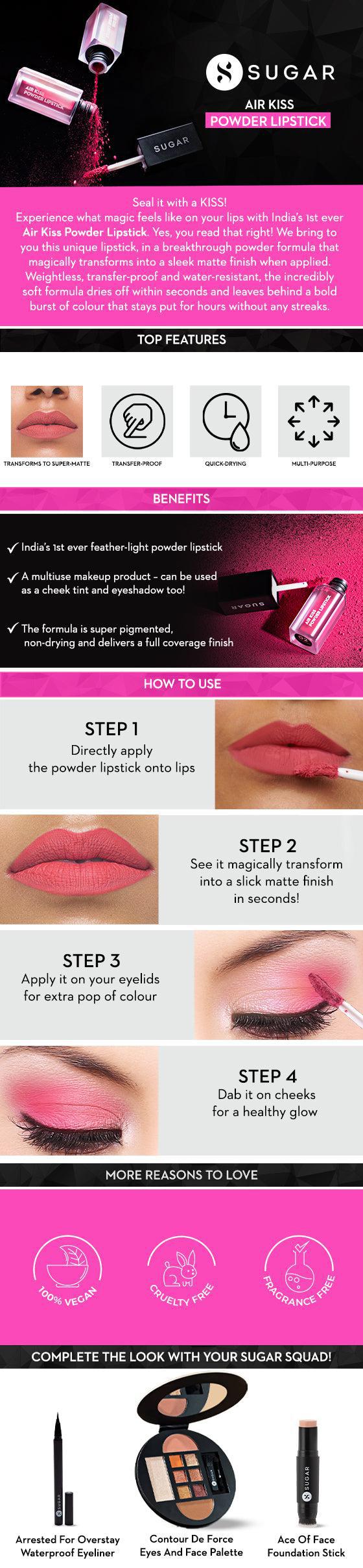 A: Totally! Our SUGAR Air Kiss Powder Lipstick is super multi-talented! Owing to its incredibly soft and blendable formula, you can use it as cheek tint for that perfect flush of colour or as an eyeshadow to elevate your eye makeup looks!