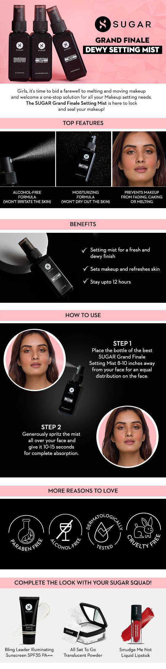 A. Yes, the SUGAR Grand Finale Setting Mist can be used both- before and after the makeup.