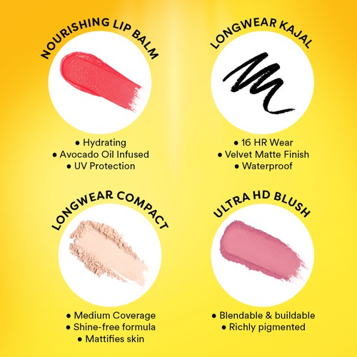 Dial up the gorgeous makeup look! How? With Kriti’s Beauty Favourites, of course. This kit is here to get you red-carpet ready, featuring our star player: Our bestselling Ultrastay Transferproof Lipstick. It’s 100% transferproof, long-lasting and delivers a super creamy matte finish that’s nothing short of magic. But that’s not all! You’ll also choose from our Longwear Kajal, nourishing lip balm and pick either the Longwear Compact or Ultra HD Blush to create your perfect base. To top it all off, there’s our 16-hour perfume and chip-resistant nail lacquer. The best part? This kit is fully customizable, so you can create a look as unique as you are. Wrapped in a sparkling glitter pouch and accompanied by stylish bookmarks and a fancy evil eye keychain, this beauty kit is your passport to flawless, personalised glamour.