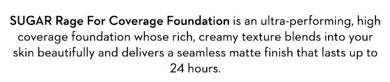 A. All the 15 shades of our new SUGAR Rage For Coverage Foundation match with shades from our bestselling SUGAR Ace Of Face Foundation Stick. You can use the SUGAR foundation guide too!