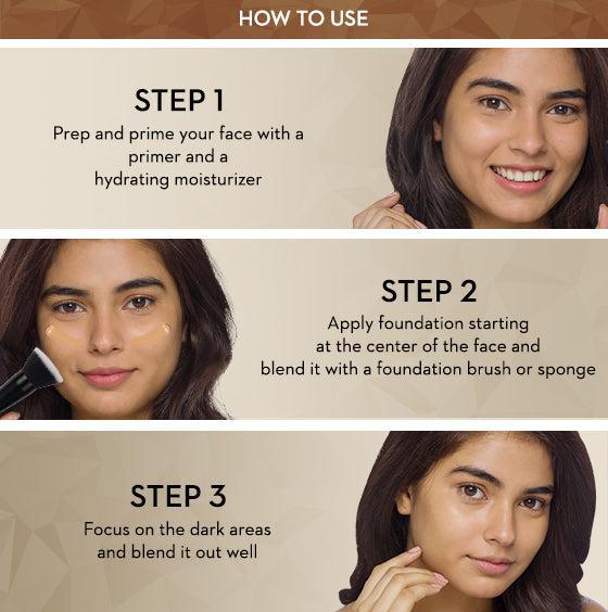 A. We'd recommend you to prep your skin well so that your base makeup looks fresh all day long. Start with moisturizing skin and follow it up with a hydrating face primer as it will give dry or flakey skin a boost of hydration and improve skin texture. SUGAR Aquaholic Hydrating Primer works perfect to give your skin a smooth and mattified look. Follow it up with foundation application using a foundation brush preferably or a damn beauty sponge. For a natural finish, you can also use your fingers. Set the base makeup with a lightweight translucent powder and seal your final look using a dewy setting mist.