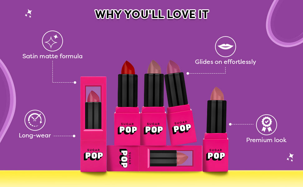 Get ready to slay your lip game with the all-new SUGAR POP Satin Matte Luxe Lipstick.
