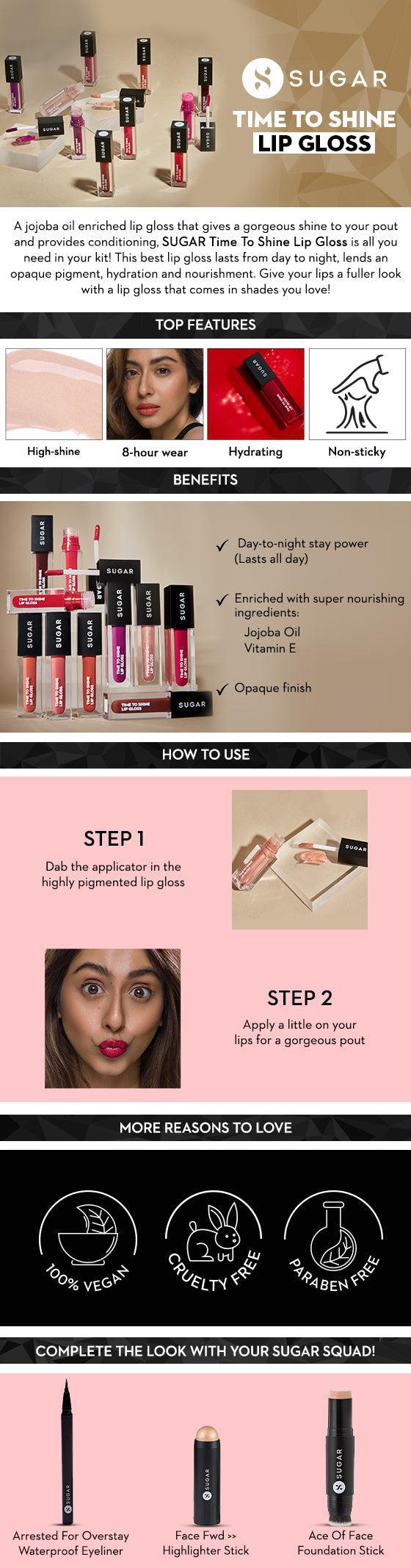A. SUGAR Time To Shine Lip Gloss will last you all day!